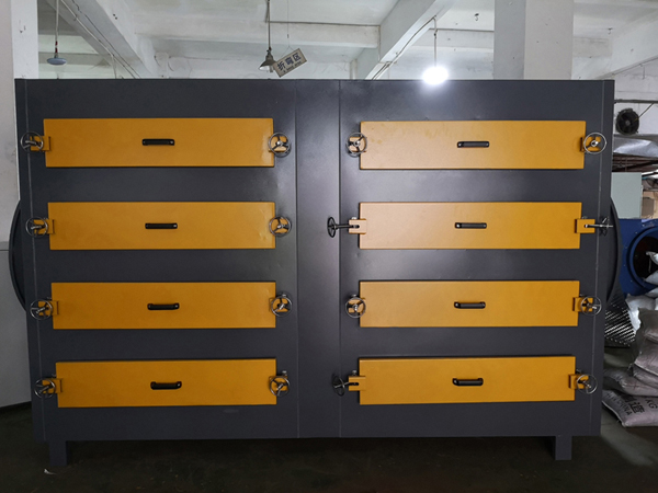 3、對于大風(fēng)量、低濃度的有機廢氣處理,活性炭一般采用較大的排列面積和較低的床層厚度,以獲得較大的氣體流通截面、較小的風(fēng)阻和合適的吸附容量。